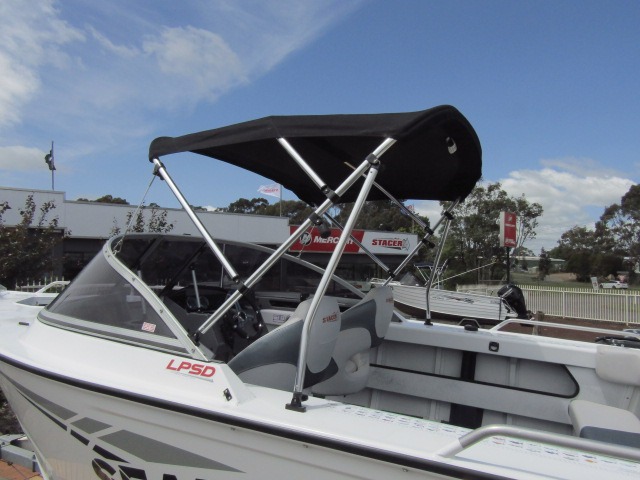 - The painted hull includes Bimini , Cutting Board with rod holders , Tacho , Speedo , GME Marine Radio , Lowrance Sounder , seat upgrade for 5 with rear lounge , Glovebox , Boarding ladder , underfloor storage , side rails , walk through screen & more.