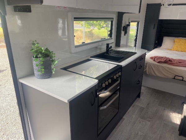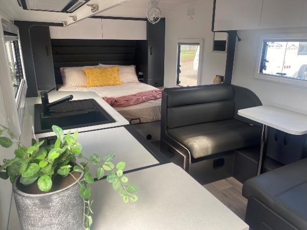 RV Wi-Fi, roll out awning, one piece fibreglass roof, nova pro-al sandwich panel walls, external picnic table, electronic water level, 95L water tanks, 105 amp battery,exteranl 12v & 240v outlets, power management system, electronic battery monitor, 2 x 200w solar panel and regulator, anti sway control, reversing camera, washing machine, al-ko rocker/roller suspension and much more.