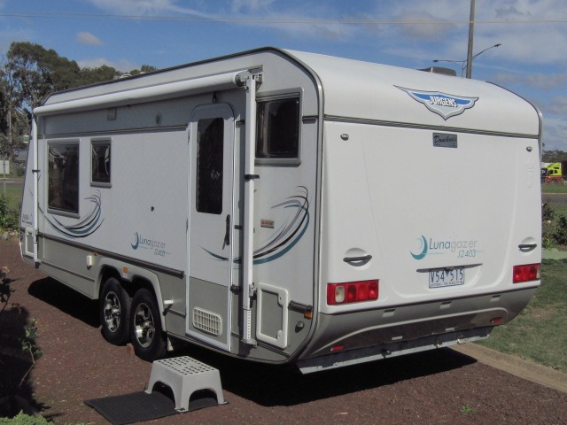 CHECK OUT THIS LOVELY LIGHTWEIGHT TANDEM TOURER WITH ALL THE COMFORTS !!! Features of this Van include : - Queen Island bed - Air Conditioning - roof mounted - Thetford Fridge/Freezer 3 way - Lovely bathroom with separate toilet & shower - Cafe style seating (comfy) with large tri-fold table - Gas/Electric Stove includes Grill & Oven - TV 22" on swinging arm - Large Solar Panel & Battery - Good bench space and storage options - Lovely curtains to compliment the existing roller blinds - Quality carpet aisle runner - AL-KO ESC (electronic stability control) - Independent rubber torsion Suspension , near new Tyres - Large near new roll out Awning with Privacy Screen - Hayman Reese Tow Hitch & Bars (if required) - Caravan Cover - near new plus front Travel Cover also near new - Lots of extras such as Levelling ramps , Hoses , Power Leads Towing Mirrors , Groundsheet , Draught Skirt , Shade sail (runs full length of Driver's side) and more !! This Van gives off a stylish comfortable feel , no water leaks , very well kept and everything has its place !!! Please call Daryl without delay on 03 5571 1033 or 0407 733893