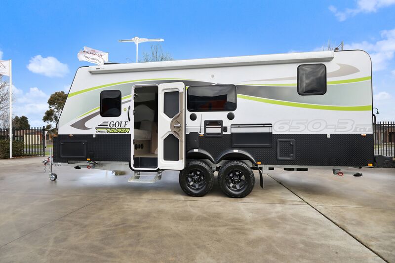 Golf caravans have helped create thousands of Australian families dream holidays for over 40 years. When envisioning the Grand Tourer range the design team considered the need for off-grid living in comfort and style as they strive to create a caravan with flexible floorplans and abundance of features to help you make the most of your van. Thus the creation of the Golf Grand Tourer range, released early 2023. The Golf Grand tourer offers a impressive amount of standard features within 7 thoughtfully designed layouts to enhance your holiday lifestyle. The Golf range has expanded and evolved over years of manufacturing and refining of the range. All golf Grand tourers are Australian designed and built in Pakenham Victoria and offer a 2 year manufacturing warranty
