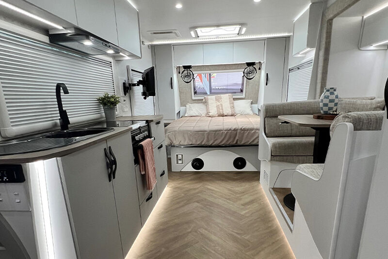 The GTX range is specifically designed to work completely off-grid. This is achieved by using Golfs unique one-piece roof design that allows for a large solar array, which is backed up by two high-capacity underfloor mounted lithium batteries. Along with the DC-DC charging system, onboard inverter and energy-efficient appliances. The GTX allows you to stay off grid without having to compromise on comfort.