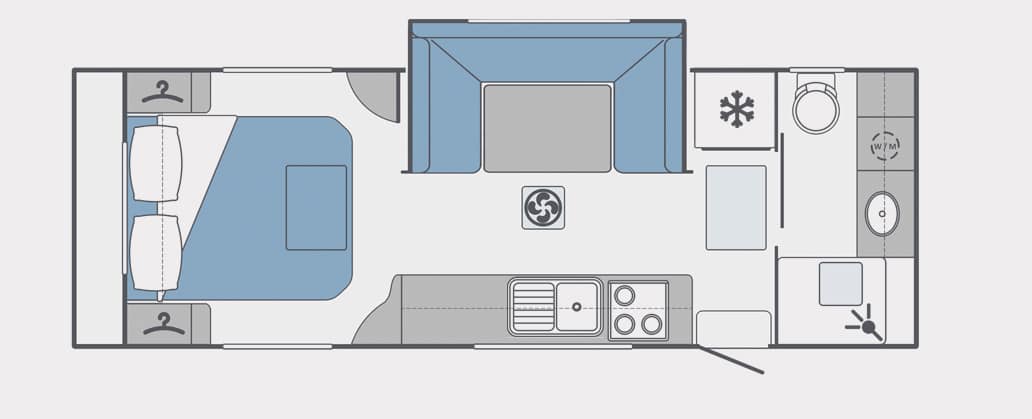 Cook in a sleek and stylish kitchen which includes a large fridge, induction cooktop plus full oven as well as the latest appliances and premium tapware. The colour coded modern interiors and large windows of this caravan will have you thinking you are in a 5 star hotel and not travelling through the great outdoors.