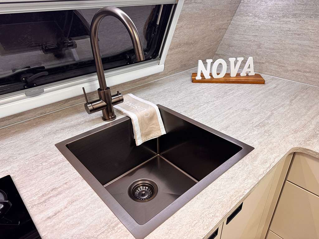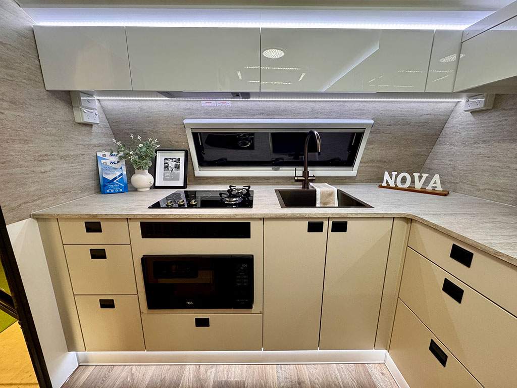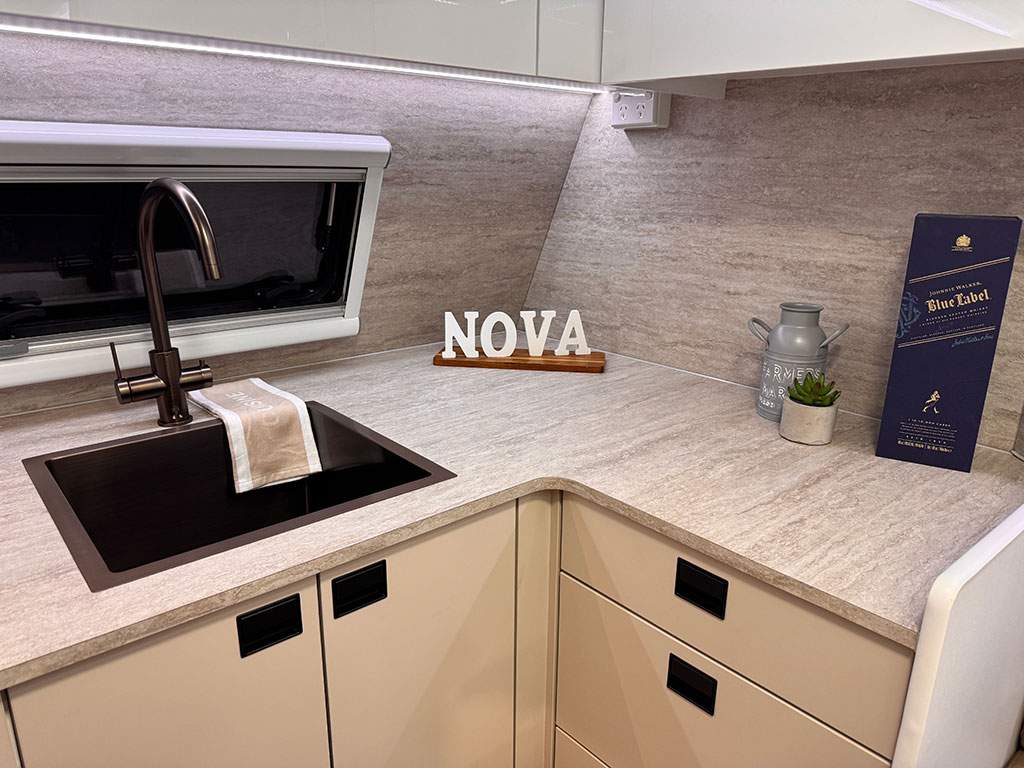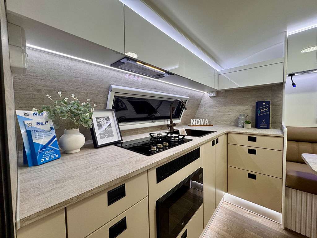 Inside the Nova VITA, luxury meets intelligent design to create a comfortable and modern touring space. Precision CNC machine-cut furniture, pull-stitch upholstery, and premium kitchen accessories deliver a sleek, contemporary interior, complemented by thoughtful touches such as decorative panels, Nova logo features, and concealed cabinetry catches. The VITA is equipped for off-grid living with a Battery Management System, 3000W inverter and 7” LCD control display, while LED lighting, USB charging points, RV WiFi and a Smart TV keep you connected and comfortable. A fully equipped kitchen, rear bathroom featuring a one-piece fibreglass shower, reverse-cycle air conditioning and an innerspring pillowtop mattress, the VITA delivers premium comfort wherever the road takes you.